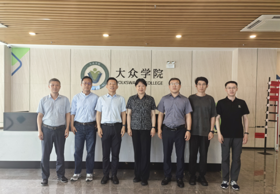 执行院长褚东亮及相关负责人李瀑、司杨、李仁平一同调研,合肥大学大众学院直属党支部书记宣跃文、教学副院长徐启圣、教学办公室负责人陈岩等,大众汽车(安徽)效能管理部总监朱江萍、企业导师热情接待。