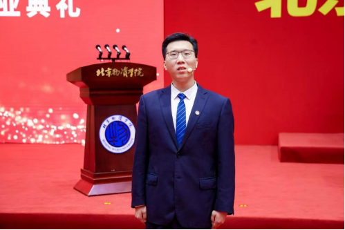 毕业生代表李昕同学发言,回顾了过去两年的收获:“从课堂理论到京东亚洲一号的实践探索,再从“挑战杯”银奖到国家奖学金的蜕变成长,这一路,皆是产教融合所结硕果。感谢物院,未来我将在建设“物流强国”的征程上砥砺前行!”他带领全体毕业生宣誓,承诺将秉持“厚德博学、笃行日新”的精神,在各行各业发光发热。