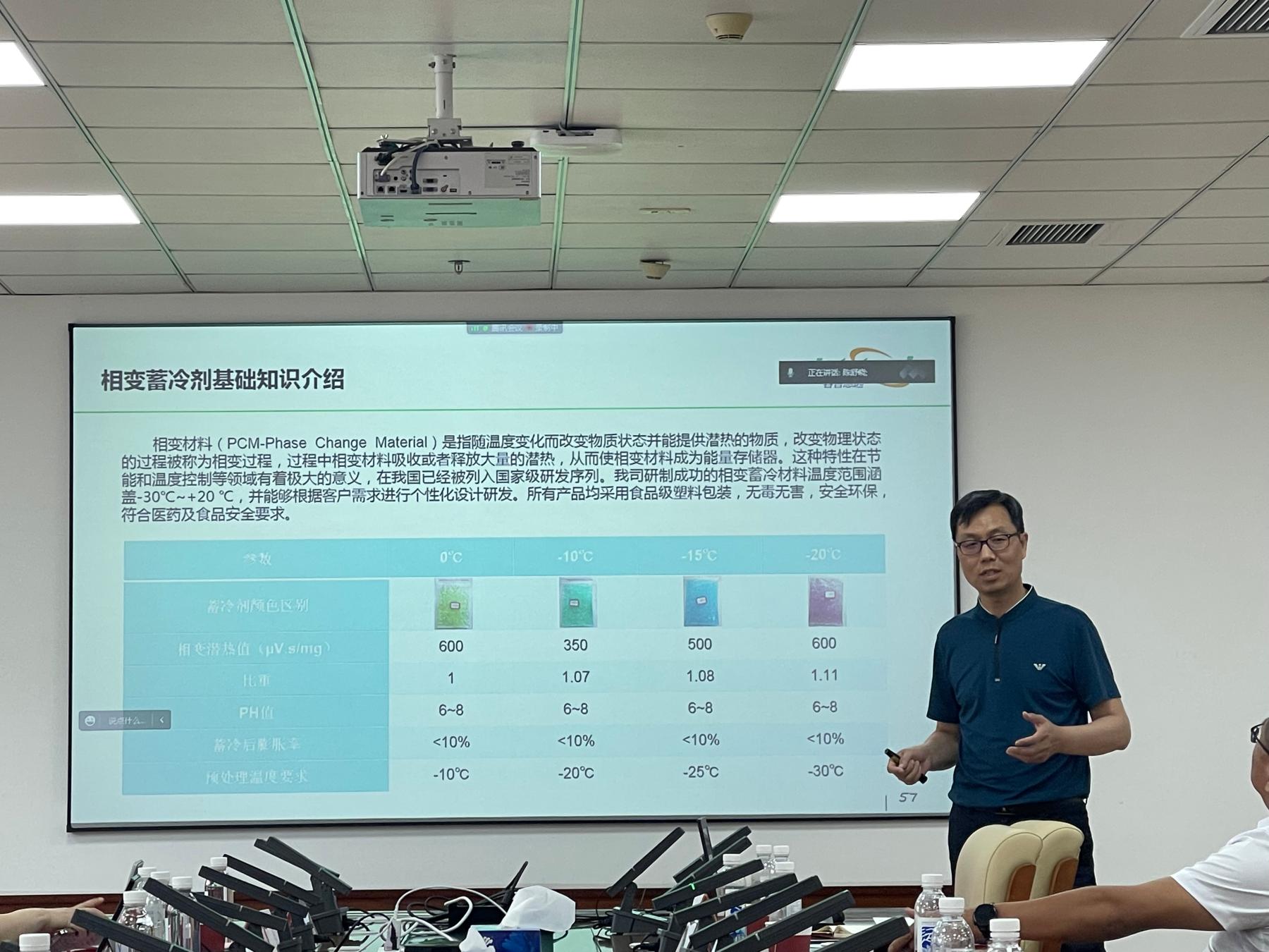 企业专家宁双民介绍了当下冷链物流的包装与运营领域的市场环境及发展现状,生动介绍了例如相变蓄冷剂等多个先进技术的原理及应用。他表示冷链物流是一个技术密集型行业,并希望在场的同学在未来的就业中可以考虑走技术研发道路,为同学们的就业方向提供指导。