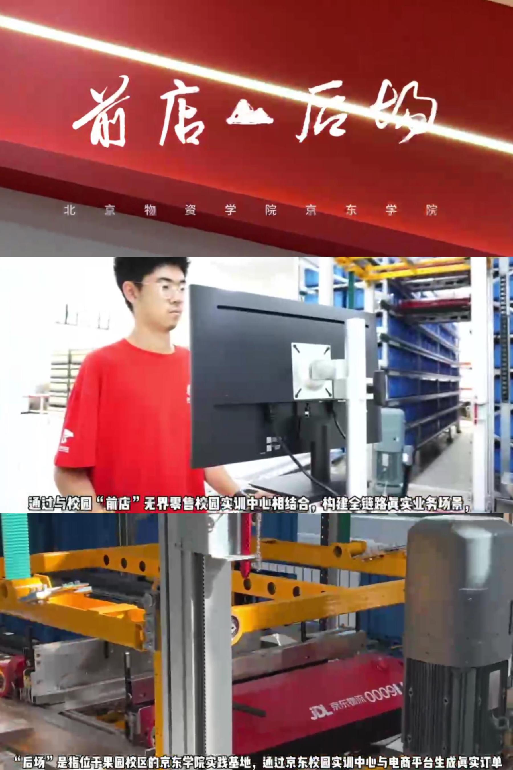 在果园校区建有智能仓储实训(虚拟仿真)中心、物流科技联合实验室、物流科技大数据中心、应急物流中心等4个实践实训基地,在主校区建有京东校园馆实践基地,总占地面积超过2000平米,以“前店后场”的实践教育模式为主线,打造产教融合的物流教育产业平台。其中,“前店”是指位于主校区的京东校园馆实践基地,是校企合作的创新载体,致力于将教育教学、生活服务与京东生态融合,把真实工作场景和业务流程引入学校,共同打造具备“品质服务、教育教学、实习实训、创业创新”等功能于一体的生产性产教融合基地。“后场”是指位于果园校区的智能仓储实训中心,通过京东校园馆实践基地与电商平台生成真实订单,驱动“后场”,也就是智能仓储实训中心的订单履行与配送作业,从而形成真实的业务场景,使得大数据分析、智能化、无人化物流设备、仿真与数字孪生等现代物流技术的教学和科研得以有效开展。
