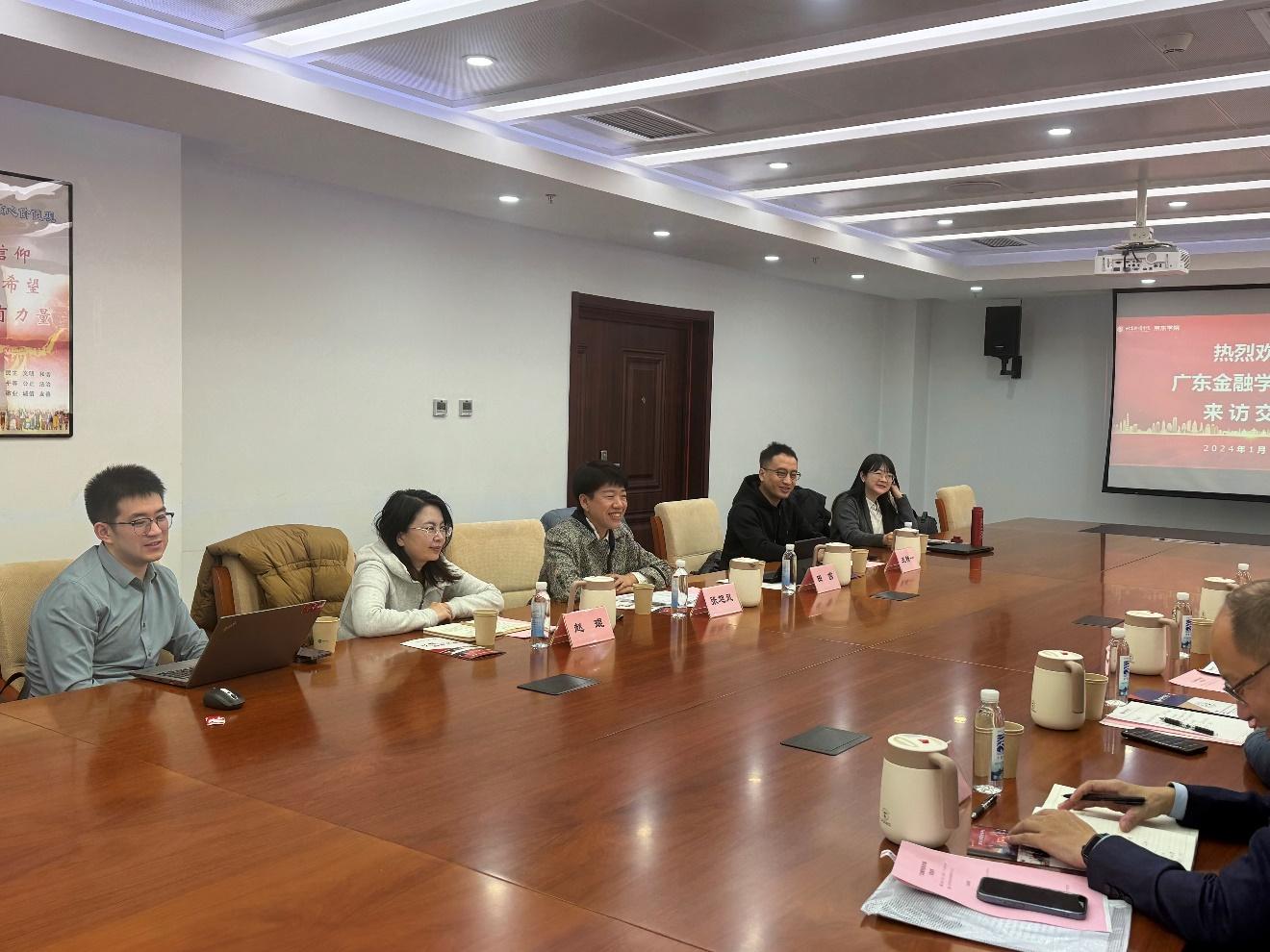 双方就产业学院建设、产教融合机制等相关问题进行交流探讨。广东金融学院对我校京东产业学院发展的经验给予高度评价,并希望在我校现代产业学院建设经验基础上,更好的打造自身的产教融合实验田。双方也就未来进一步合作的可能性进行了探讨。